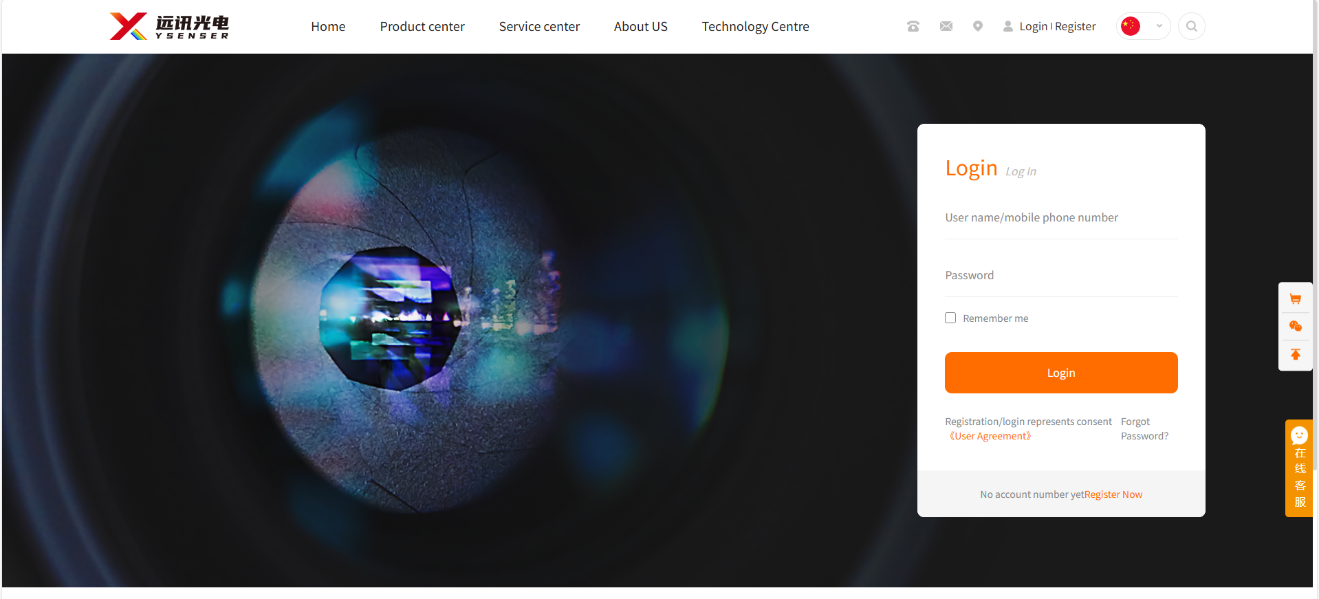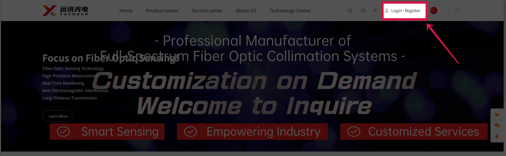 Step1.Open the homepage of Yuxun Optoelectronics' official website (www.www.tech-material.cn) and click the "Register" button at the top right corner.